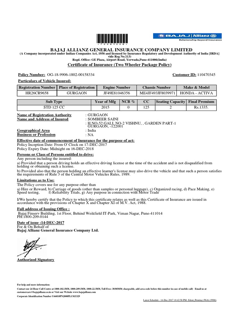 Bajaj Allianz Pdf Two Wheeler Insurance / Bajaj Allianz General Insurance Stamp - The company was established in 2001.